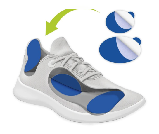 - Werden nicht auf der Haut, sondern im Schuh oder auf Einlegesohlen angebracht.